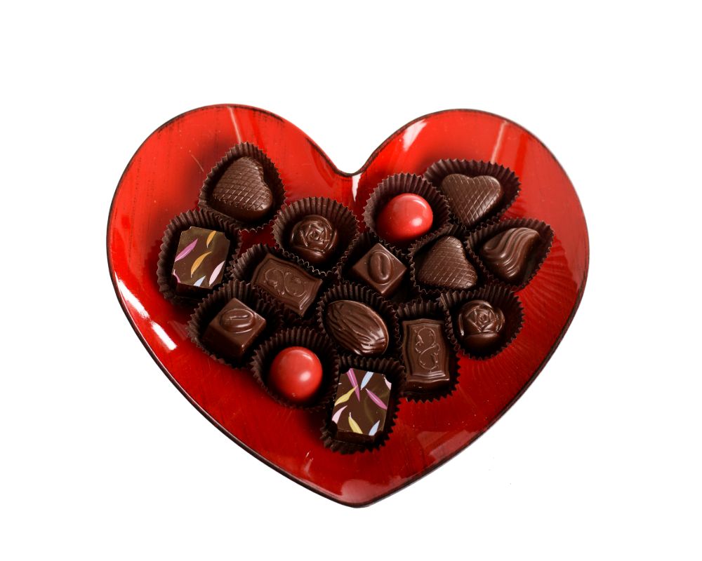 Red heart-shaped pvc plate filled with scrumptious Belgian chocolate!